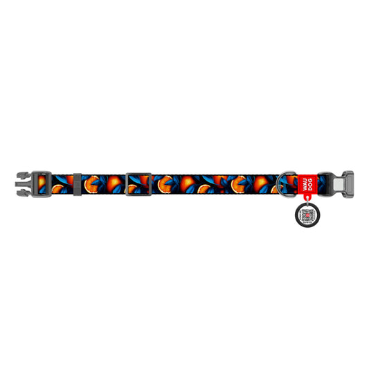 WAUDOG NYLON DOG COLLAR WITH QR PASSPORT ORANGES DESIGN