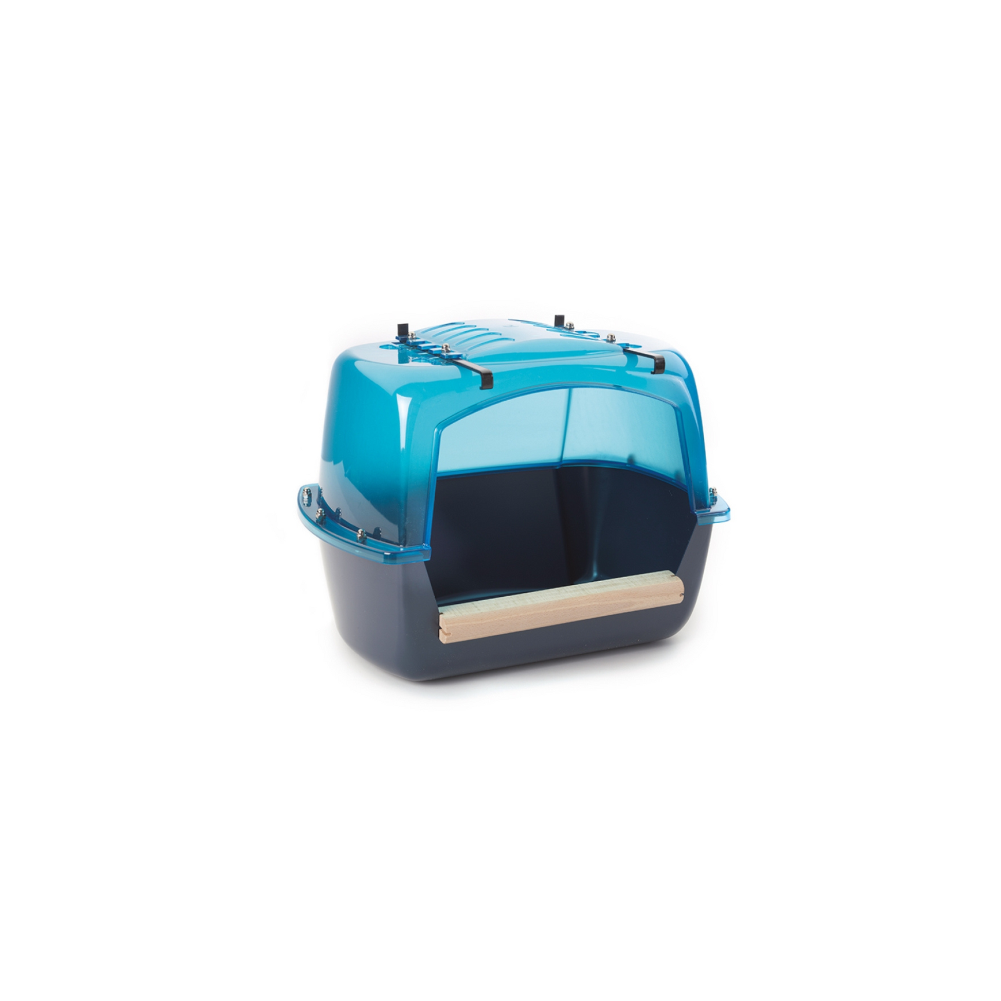 Είναι κατάλληλο ακόμα και για τσιντσιλά. Το μπάνιο διαθέτει μεταλλικές βίδες και γάντζους, δίνοντάς του ένα ασφαλές και ανθεκτικό φινίρισμα. Είναι κατασκευασμένο από ανθεκτικό πλαστικό και ξύλινη κοπή για εύκολη πρόσβαση στο μπάνιο.