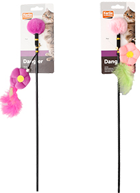 Ένα ραβδί για γάτες με λουλούδια και φτερά.