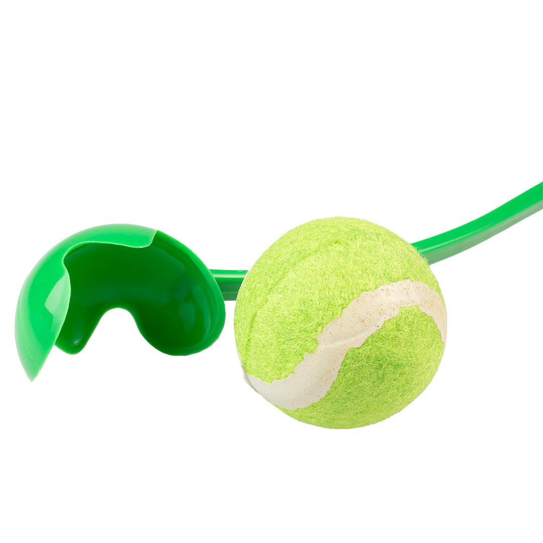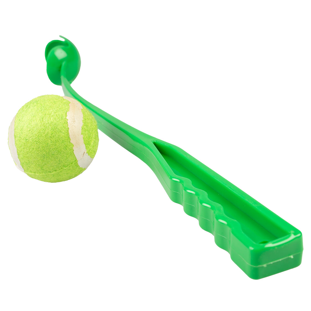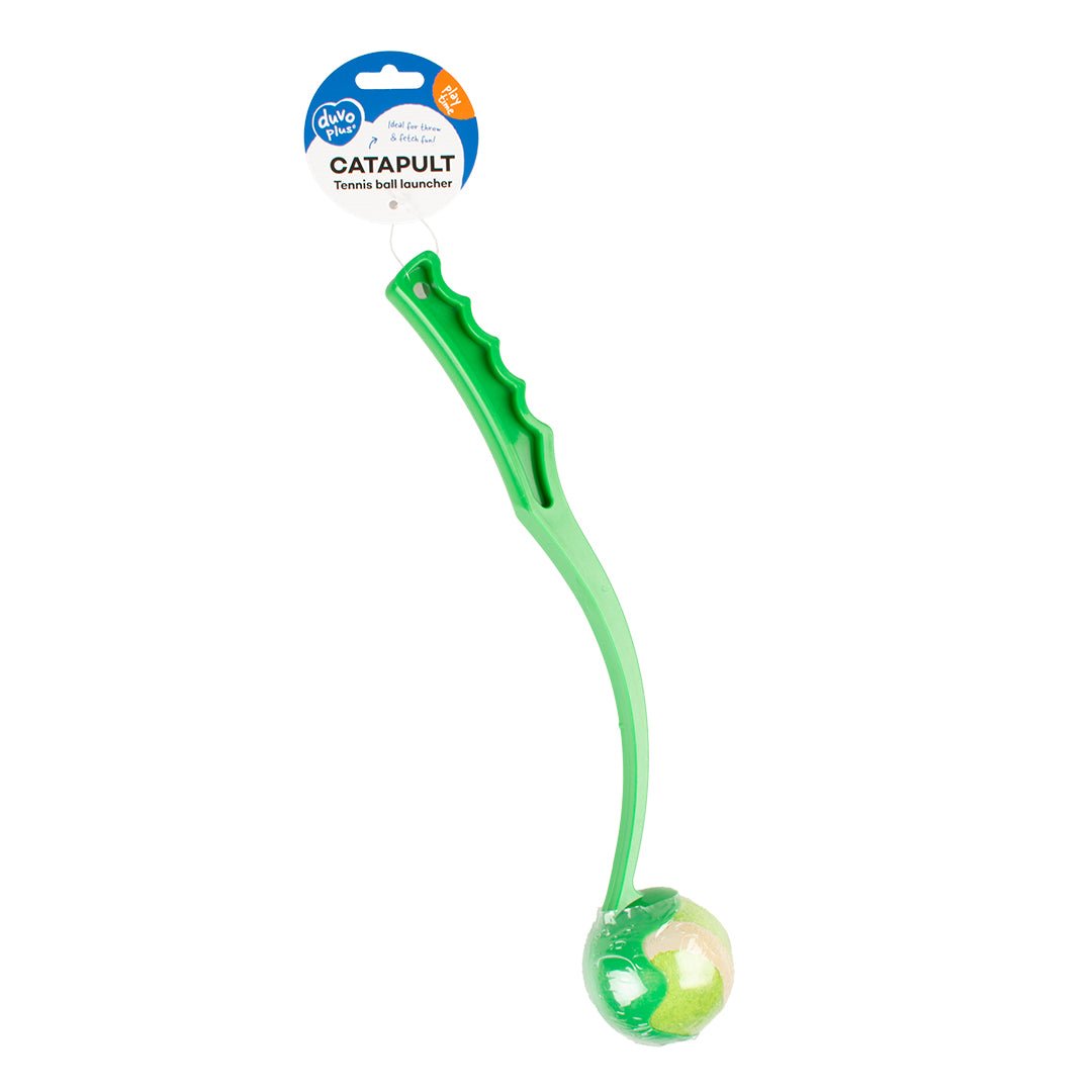 This duvoplus catapult with tennis ball has a long throwing arm for extra-long throws. An outstanding fetch toy! Very ergonomic because thanks to the length of the catapult, you can easily pick up the ball without bending down. Catapult includes tennis ball.