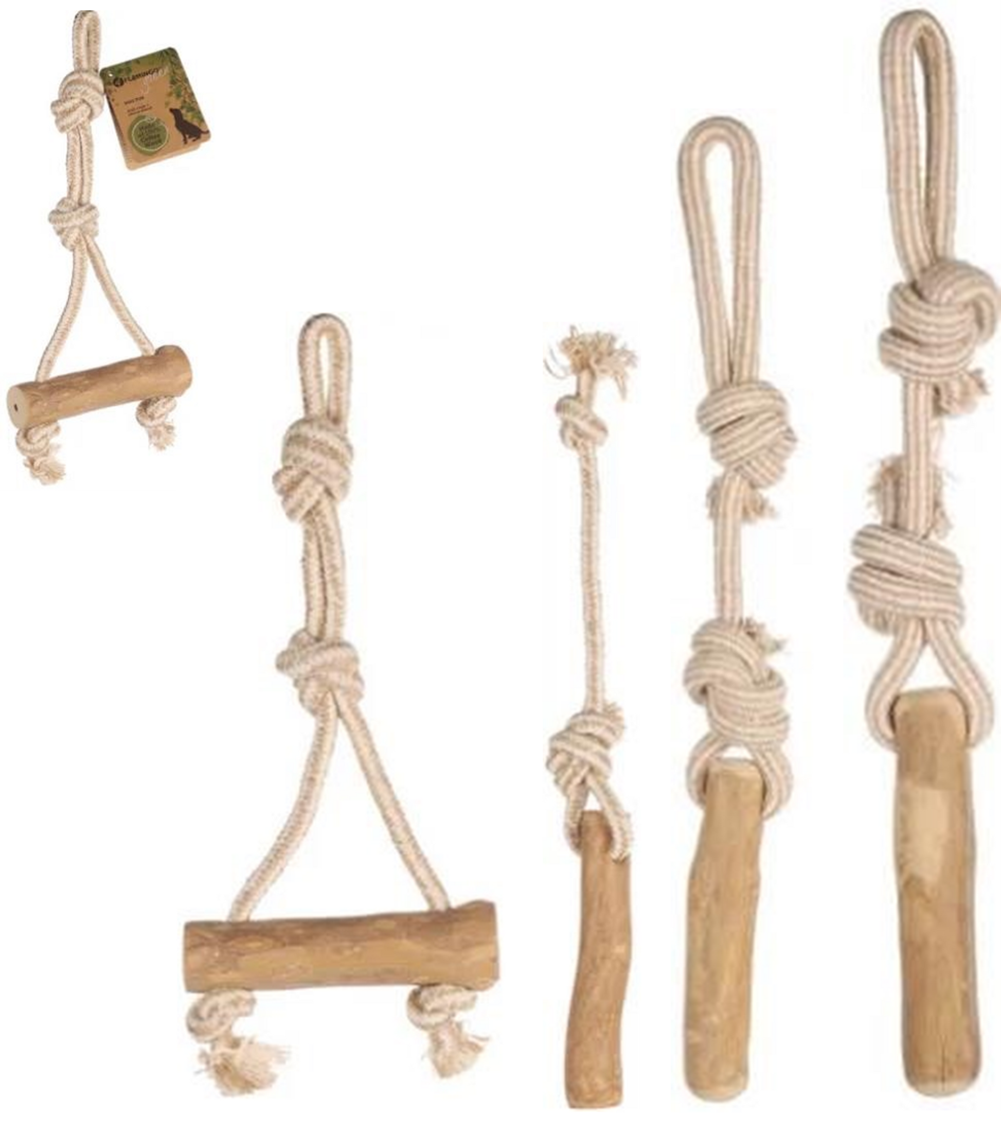 Material: 100% natural, durable coffee tree wood with cotton rope.
