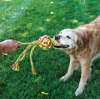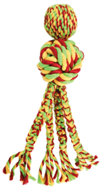 Η Ύφανση KONG Wubba με σχοινί συνδυάζει τον ενθουσιασμό της ανάκτησης και της διελκυστίνδας με μια μακροχρόνια εμπειρία μάσησης. Το στριφτό σχοινί είναι κατασκευασμένο από ύφασμα για να παρέχει ανθεκτικότητα στο μάσημα, ενώ παράλληλα βοηθά στον καθαρισμό των δοντιών. Οι μακριές ουρές, οι οποίες είναι επίσης κατασκευασμένες από υφαντά σχοινιά, είναι ιδανικές για φυσικό χρόνο παιχνιδιού. Διαθέτει ένα τρίξιμο για να προσθέσετε περισσότερο ενθουσιασμό για ακόμα μεγαλύτερες περιόδους παιχνιδιού. Ιδανικό για παιχνίδι σε εσωτερικούς και εξωτερικούς χώρους.