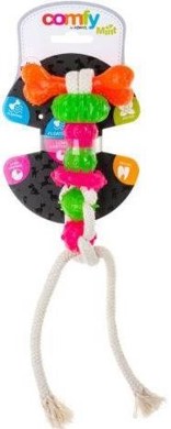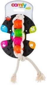 Dog toys available in 3 variations, MINT DENTAL TOOTHER toys are a combination of durable cord and plastic elements safe for pets. They differ in the number of beads and the way the cotton cord is tied. Their design allows for simultaneous play and tooth care. Thanks to the spikes and knots, when bitten, the toys remove plaque from the teeth and massage the gums. They have a mint scent and attractive colours.