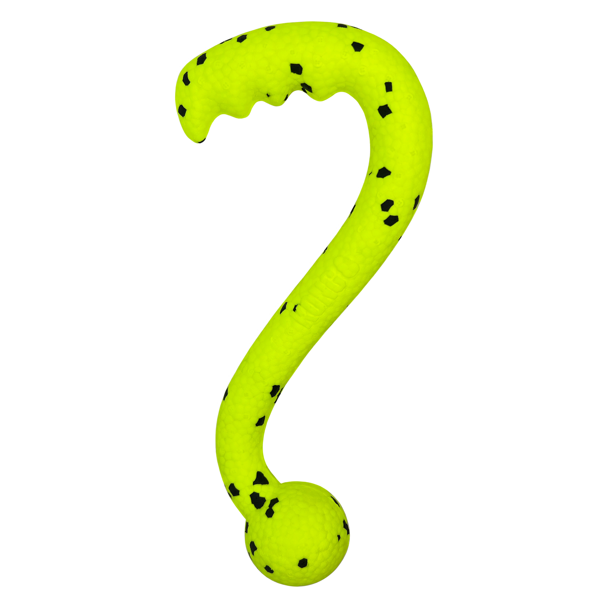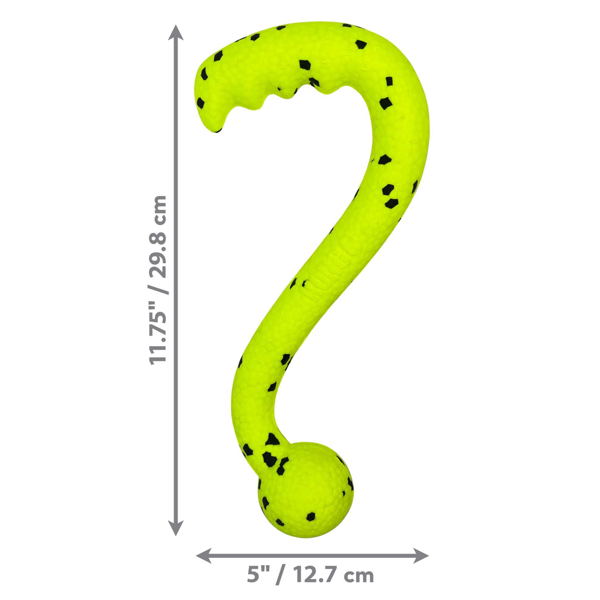 KONG Reflex Tug ‘n Fetch’s durable, flexible bounce comes from the same cutting-edge material as elite running shoe soles— so rugged it’s guaranteed to last through tough tugging and fetching. Bite-defying self-healing properties repair toothmarks for long-lasting, instinct-satisfying interactive fun. A tugging handle on one end and a ball shape on the other end allow for carrying, tugging, fetching, and biting for gentle to heavy chewers. This toy’s lightweight material floats for water play and stands up to the elements for seasons of action.