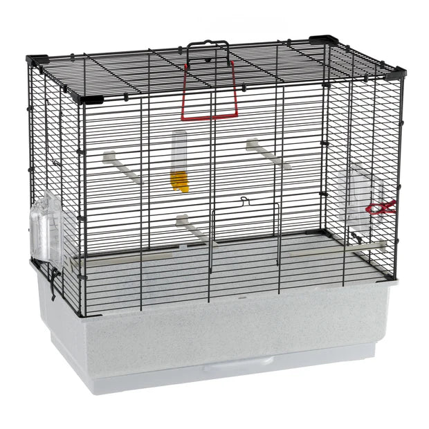 Το Rekord 4 είναι ένα άνετο κλουβί μεσαίου μεγέθους ιδανικό για καναρίνια, παπαγάλους και μικρά εξωτικά πουλιά. Η πλαστική βάση είναι ανθεκτική και ο δίσκος συλλογής βρωμιάς είναι εύκολος στη συντήρηση. Διαθέτει όλα τα αξεσουάρ, ράβδους με πλαστική επίστρωση, ταΐστρες που περιστρέφονται για εύκολο τάισμα και βγαίνουν για καθάρισμα, ποτιστήρι, κλιπ σε κλιπ για να κρεμάσετε φαγητό και παιχνίδι καθρέφτη. Καθαρίζεται εύκολα χάρη στην πλαστική του βάση με αφαιρούμενο δίσκο. Άλλωστε η βάση είναι πολύ ευρύχωρη ώστε να βγαίνει βρωμιά. Διαθέτει 1 πόρτα μπροστά και 1 στο πλάι.