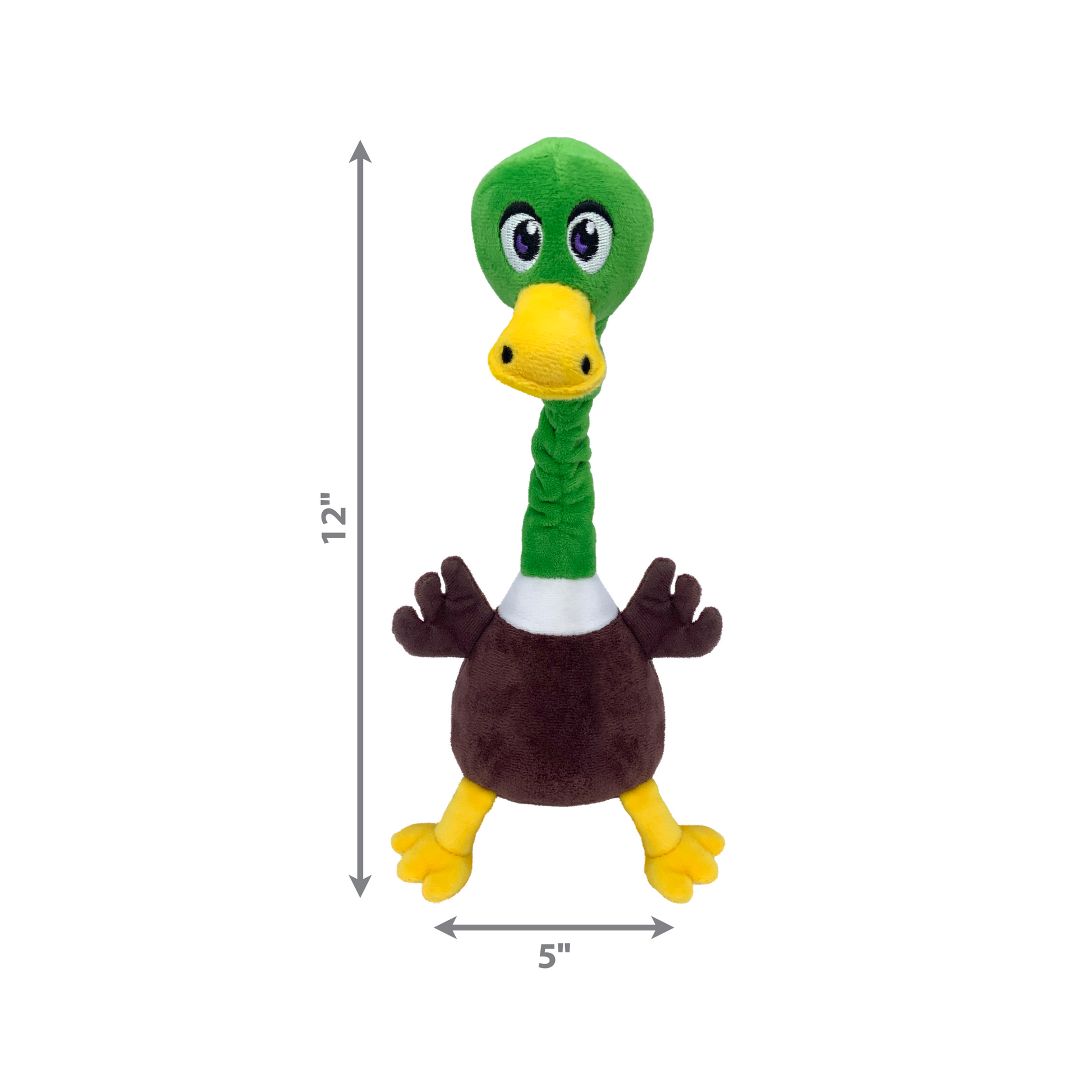 KONG Shakers Bobz Mallard has a robust, flexible rope in his wobbling neck that allows him to nod and invite his long, floppy body to thrash in instinct-satisfying episodes of duck-duck-shake. The low-toned squeaker enhances playing, while a layer of reinforcement adds to the enjoyment of shaking, fetching, and tossing.