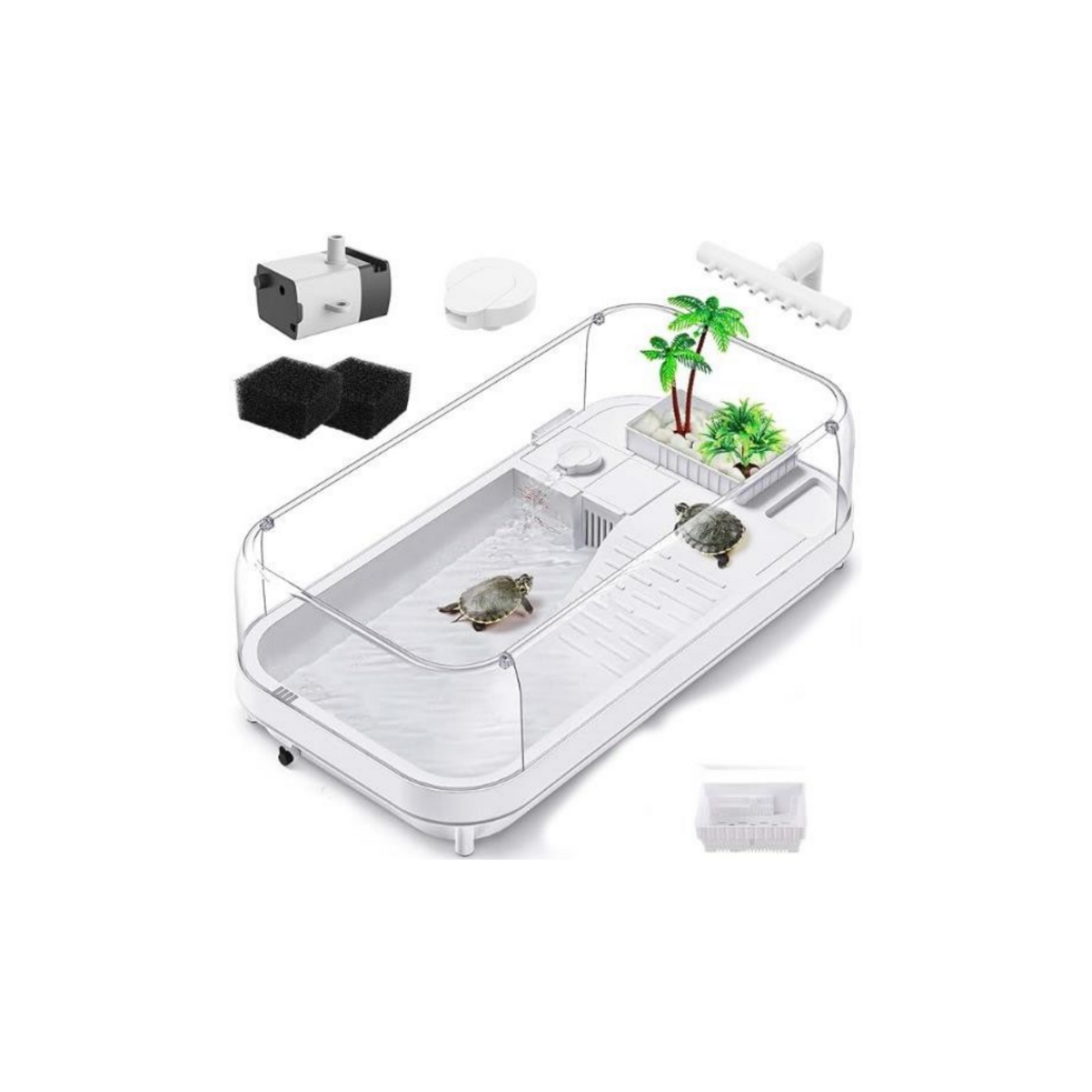 The turtle tank has a drainage system for easy water changes without needing to move it.