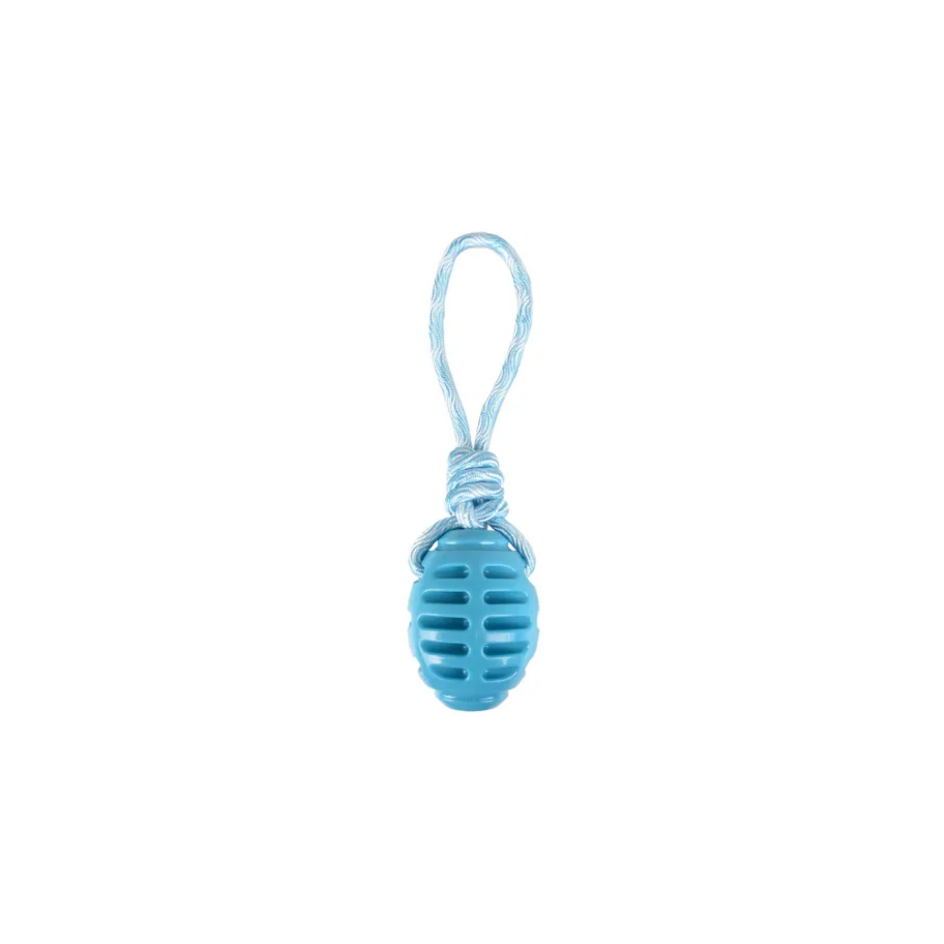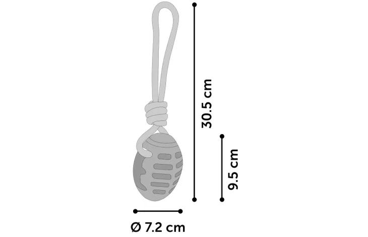 This rugby ball with rope is made of thermoplastic rubber. It is non-toxic, extremely durable, weather-resistant and good for teeth thanks to its serrated edge.