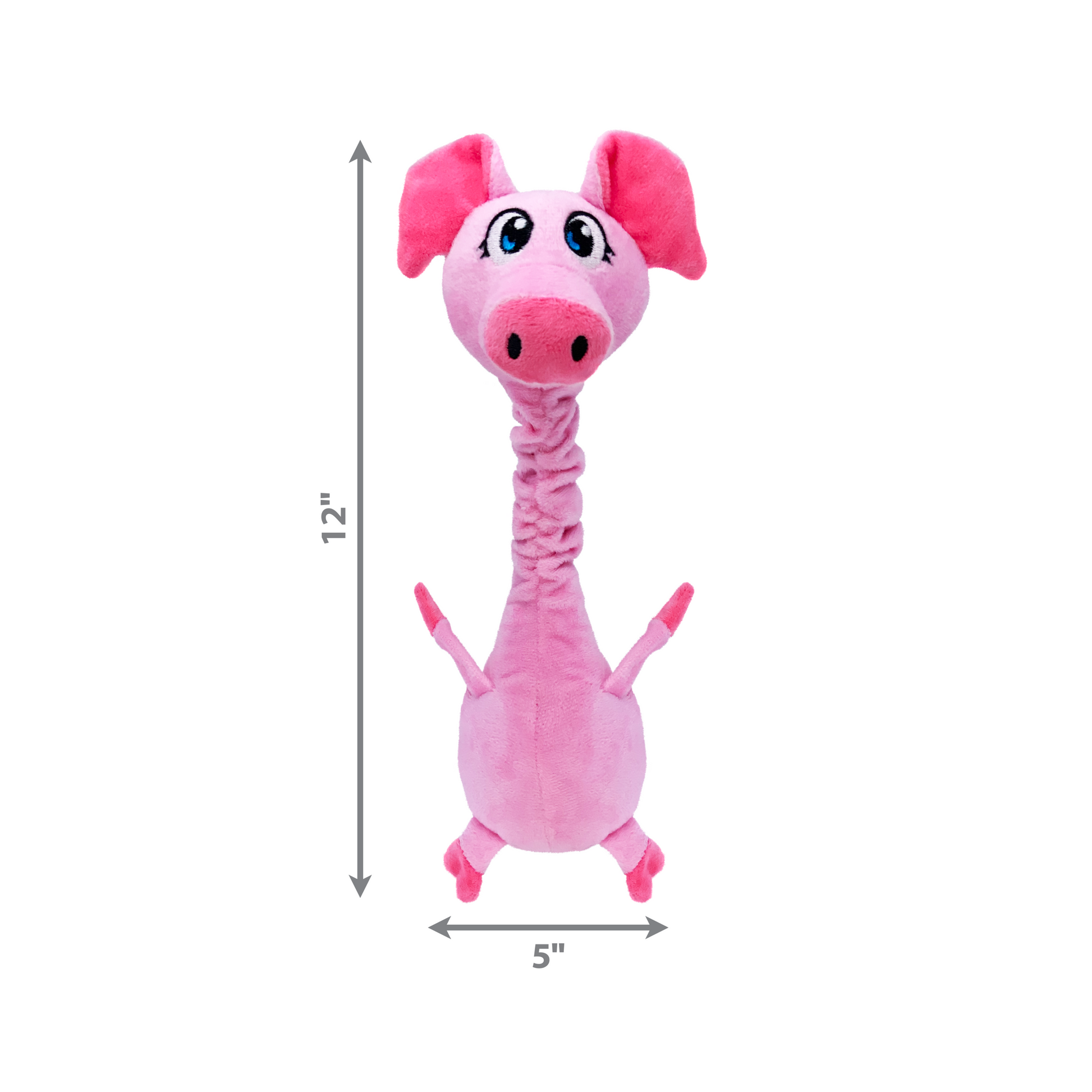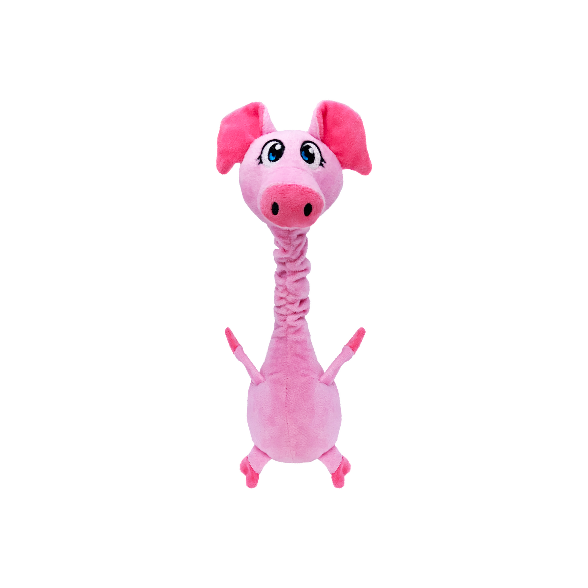 Bobz Pig from KONG Shakers has a robust, flexible rope in his wobbling neck that allows him to nod an invitation to thrash his long, floppy body in instinct-satisfying bursts of barnyard joy. The low-toned squeaker enhances playtime, and a layer of reinforcement adds to the tugging, fetching, and tossing pleasure.