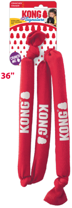 The irresistible sound of the KONG Signature Crunch entices dogs to tug, play, and have long periods of fun and satisfaction. It enhances natural instincts, while the durable all-season external tube sock stretches for lasting entertainment. Additionally, it is the perfect size for a game of tug-of-war between two dogs, adding extra fun to the playtime!