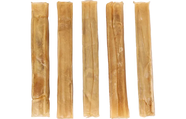 Treat your loyal four-legged friend to these delicious Buffalo Hide dog snacks! Made from natural ingredients without any additives. Each pack contains 5 chew sticks of 12.5 cm. Perfect for rewarding or keeping your dog occupied.