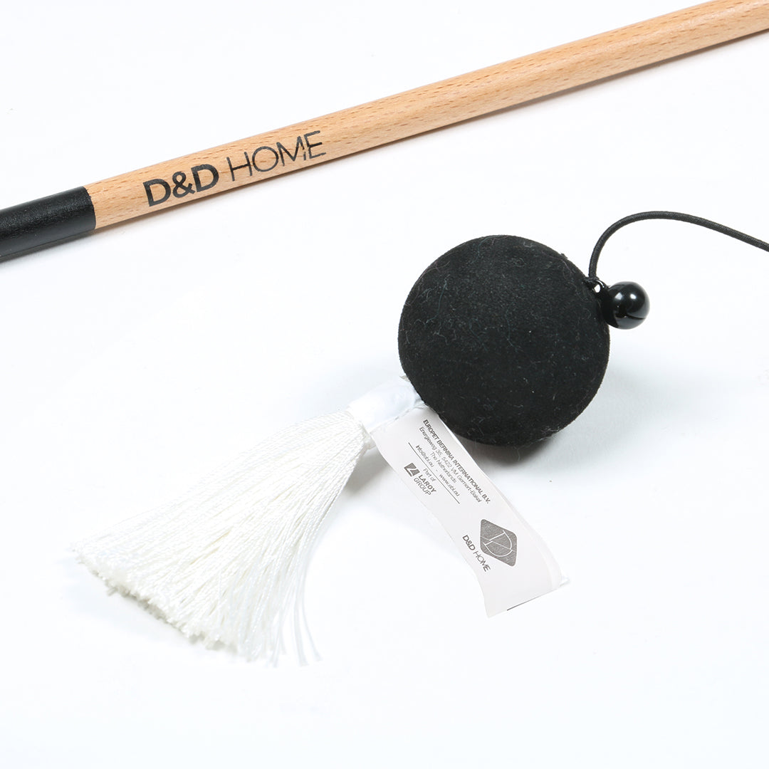 The D&D HOME Teddy is a stylish, interactive cat toy. The rod itself is made of wood. The EVA ball with a tail hangs off a black elastic cord. When your cat tries to catch his prey, the ball bounces around in all directions!