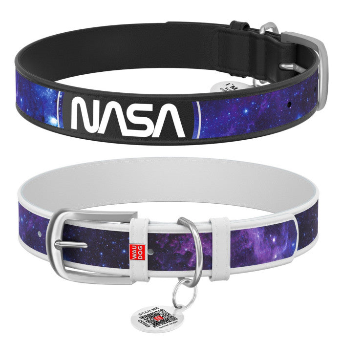 WAUDOG Design dog collar with QR passport, "NASA21" pattern Black