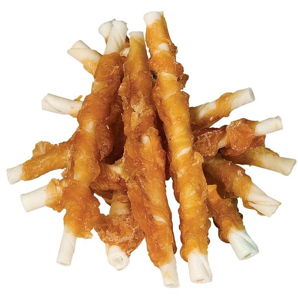 Простой и классический. Долговечная палочка из сыромятной кожи, обтянутая полосками филе куриной грудки. Приготовленный в духовке, он станет одним из любимых лакомств вашей собаки.