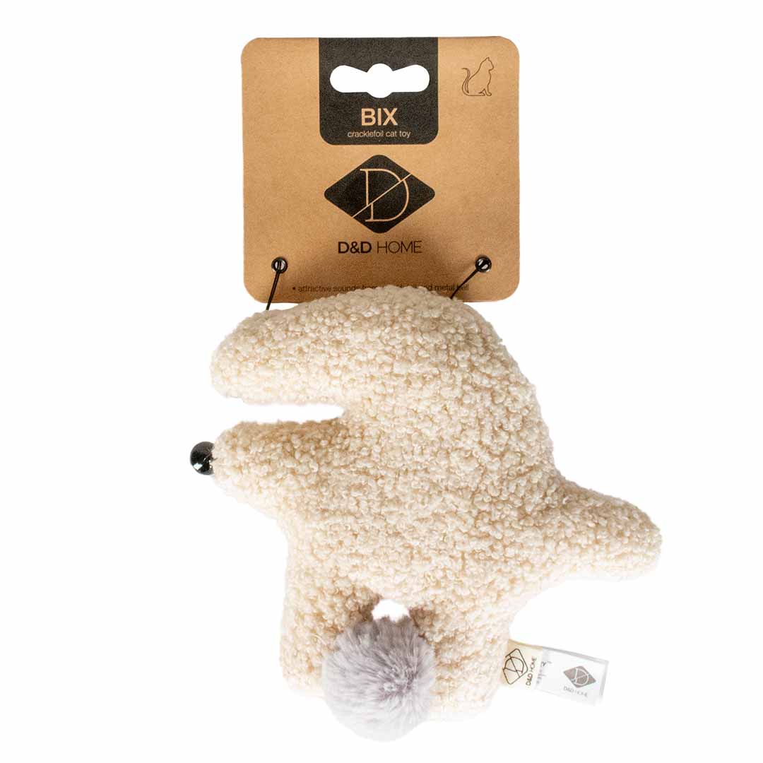 Discover the Bix Kicking Pillow from D&D Home - the ultimate toy for your cat! This pillow is made of soft teddy fabric and is equipped with a bell, fluffy balls, and crackling foil. It provides endless playtime fun and stimulation for your beloved pet. Let your cat enjoy the perfect playmate with the Bix Kicking Pillow!